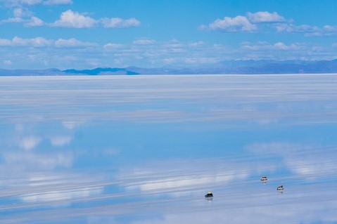 ウユニ塩湖を走行する車